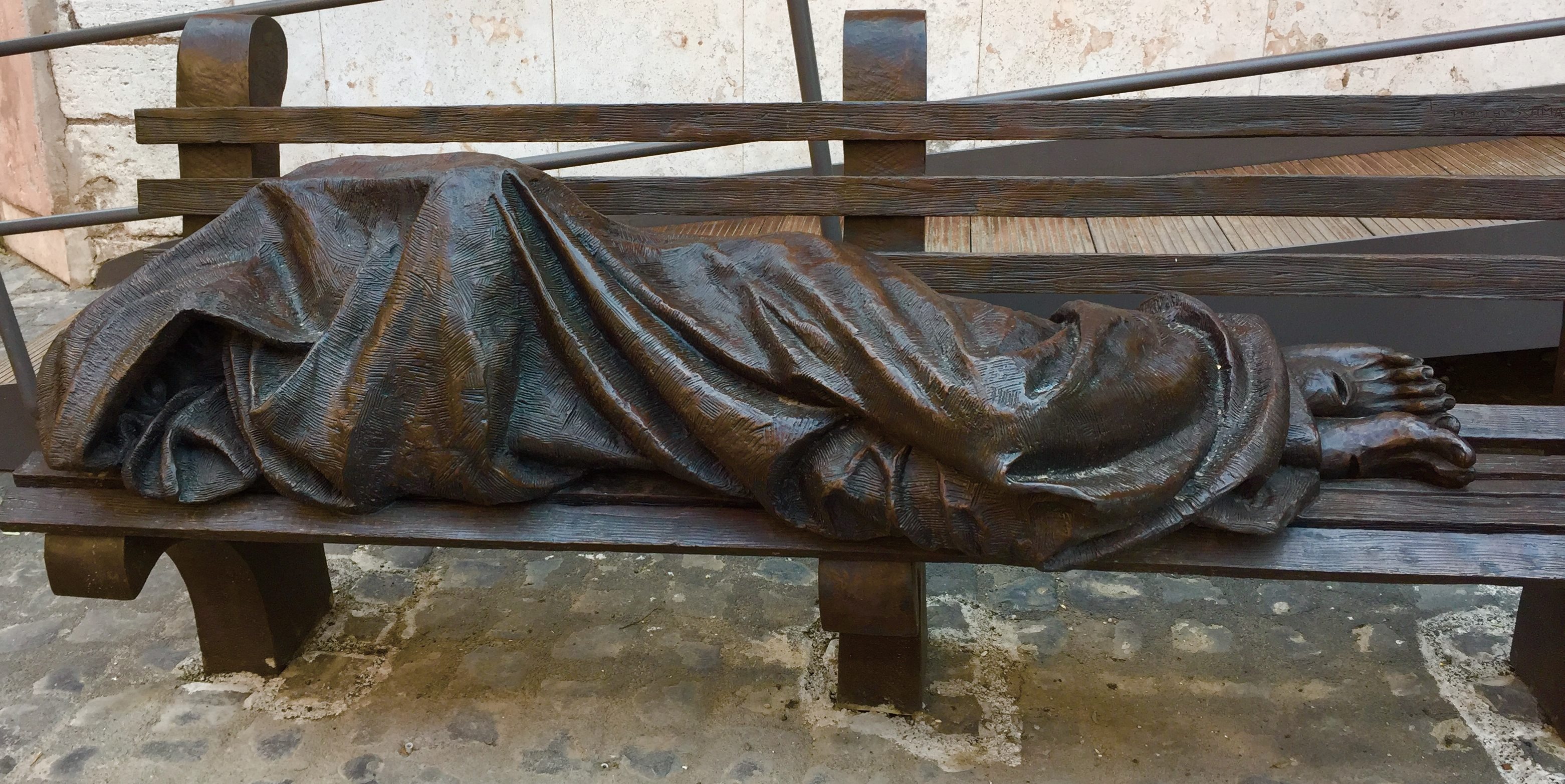 Bild: I. Hoffmann: Skulptur vor der Kirche Sant’Egidio in Trastevere (Rom)