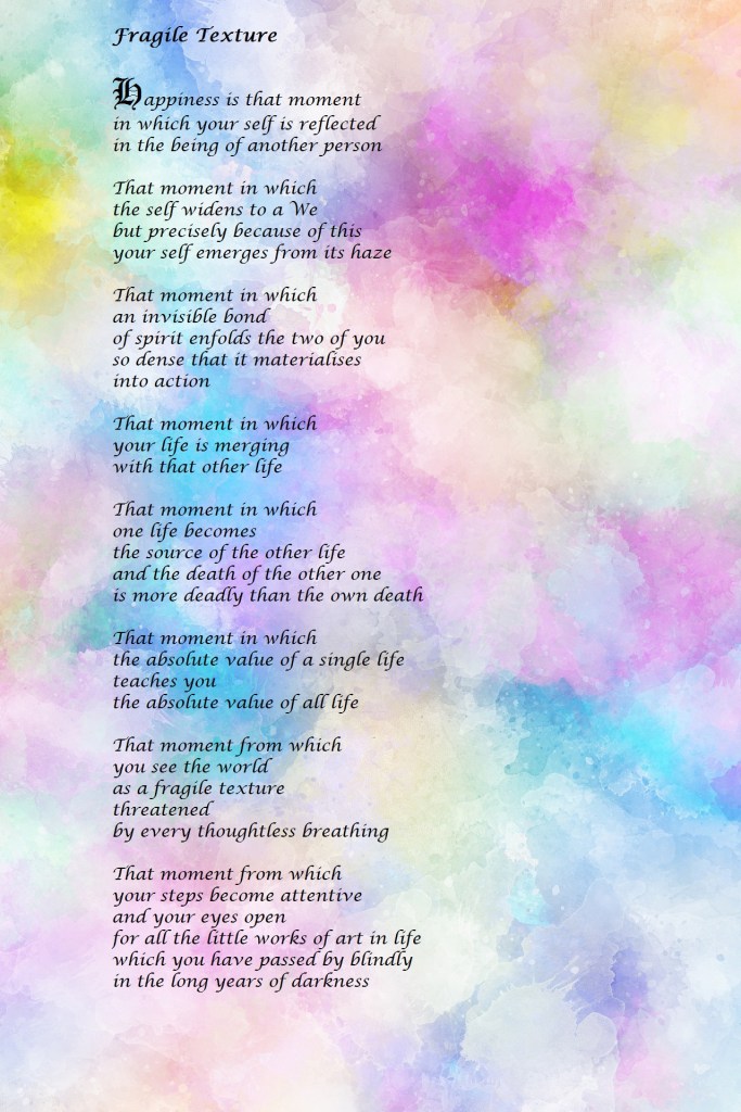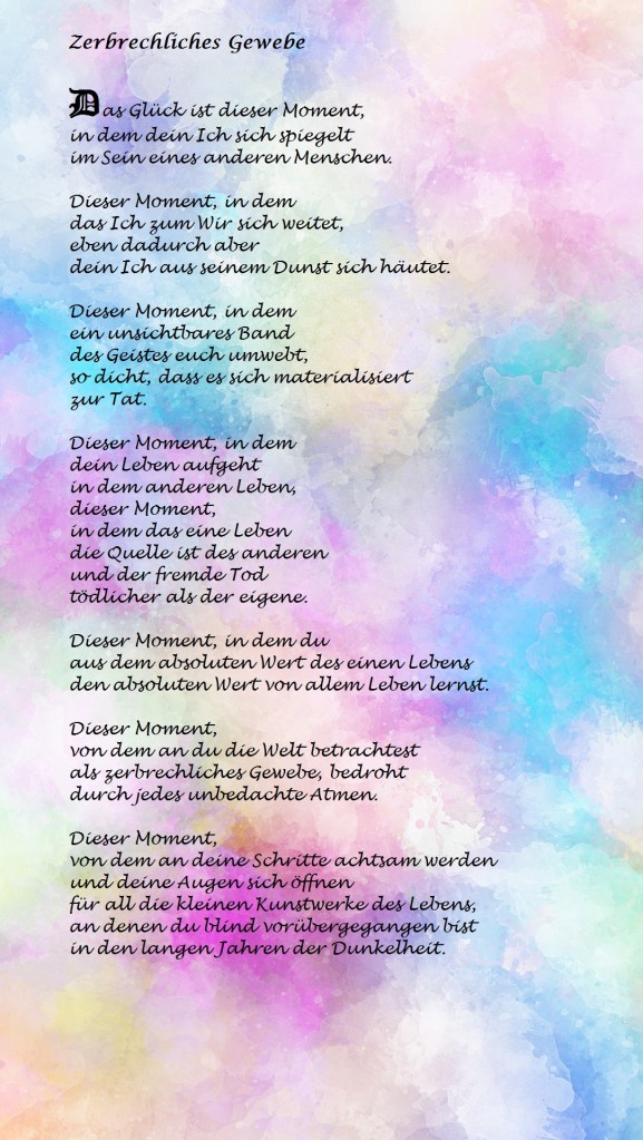 Aus dem Zyklus Oktober in den Bergen. Meditationen über das Glück / From the poem cycle October in the mountains. Meditations on happiness