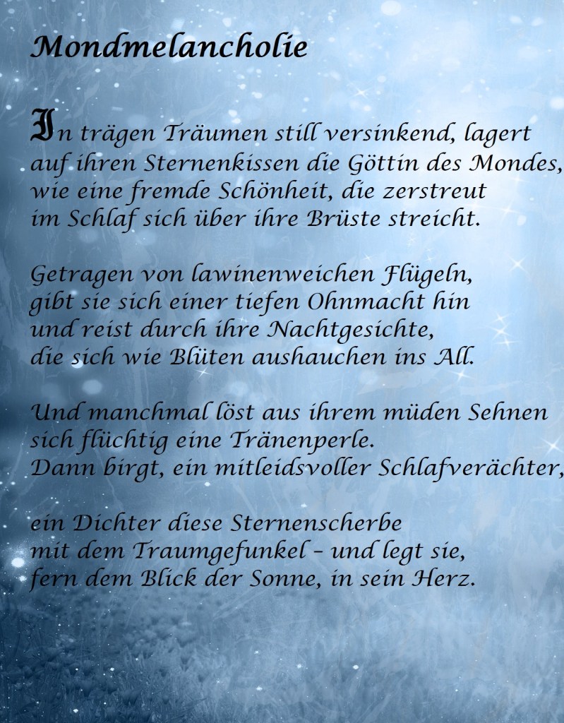 Die Traumtränen der Mondgöttin versickern meist ungesehen in der kapitalistischen Wüste. Nur wenn ein Künstler sie in seinem Herzen aufnimmt, verwandeln sie sich manchmal in Perlen.