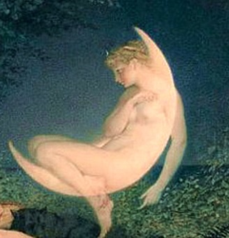 Bilder / Pictures : Bilder / Pictures : Die Mondgöttin Selene; Ausschnitt aus: Victor Florence Pollet (1811 – 1883): Selene und Endymion (entstanden zwischen 1850 und 1860); Nadar. Porträt Charles Baudelaire, 1855 (Wikimedia), Hintergrund: Ractapopoulus. Mondlicht (Pixabay)