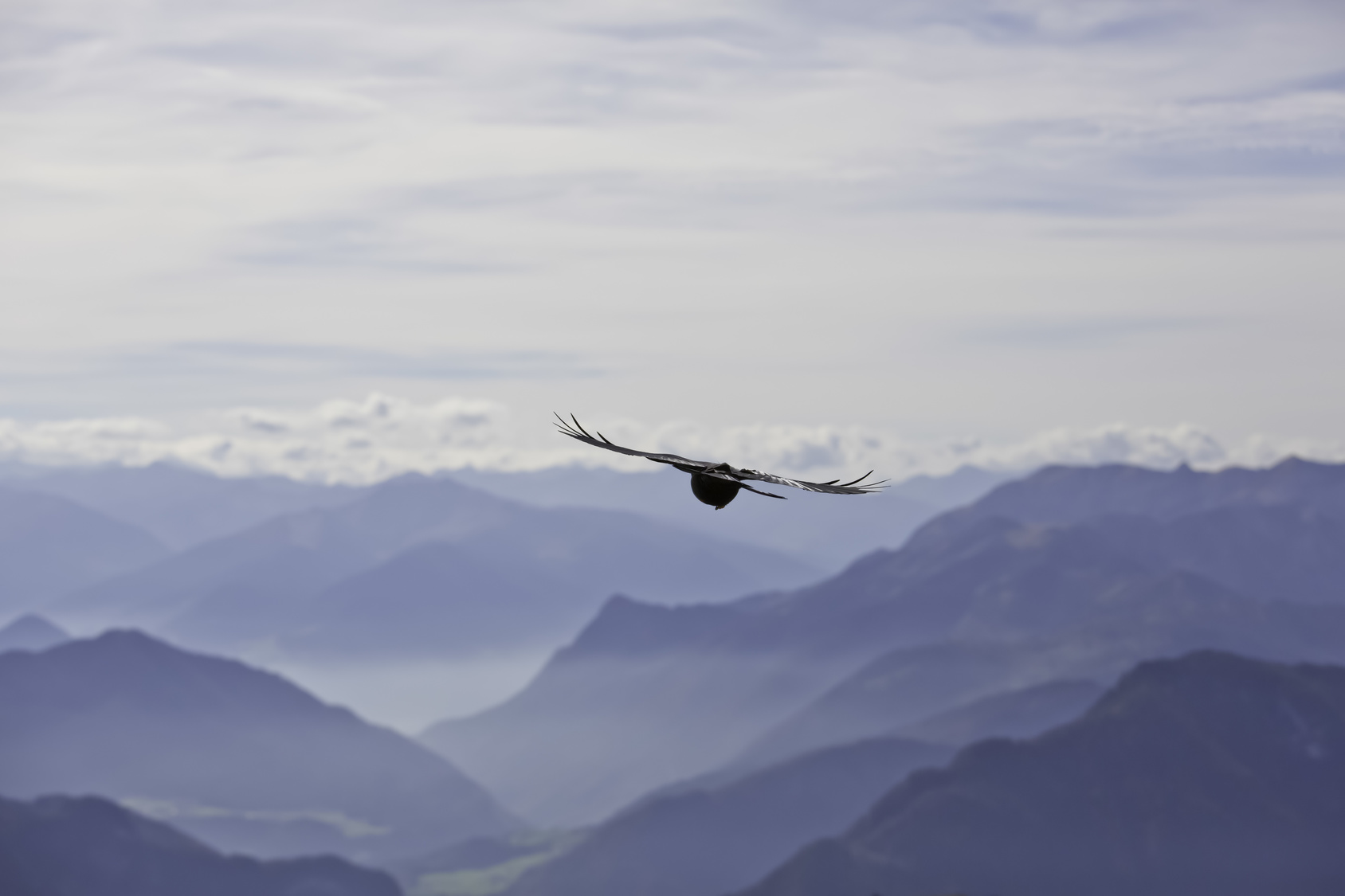 - und Titelbild: Svenni: Flug einer Almdohle in den Bayrischen Alpen / Flight of a mountain jackdaw in the Bavarian Alps (Fotolia)