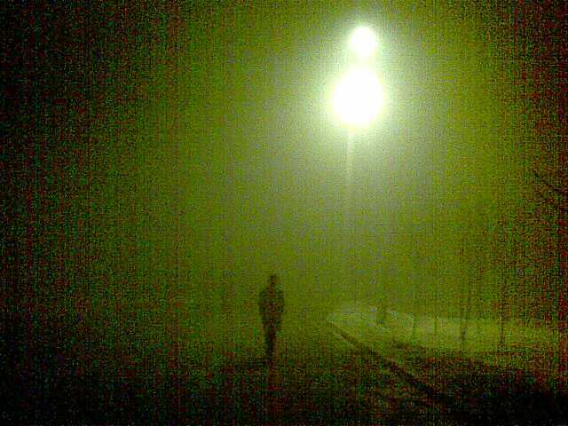Als schließlich klar wird, dass es sich um einen durch den Nebel spazierenden Mann handelt, wird die Sphärenmusik allmählich leiser, bis nur noch die Hintergrundbässe übrig bleiben. Diese werden nun in anschwellendem Stakkato lauter, wie ein Herz, das aufgeregt schlägt.