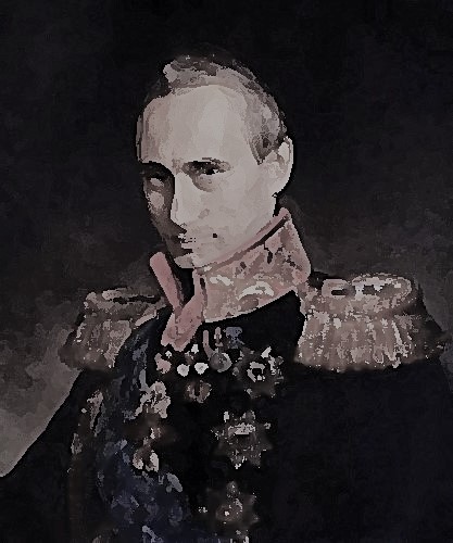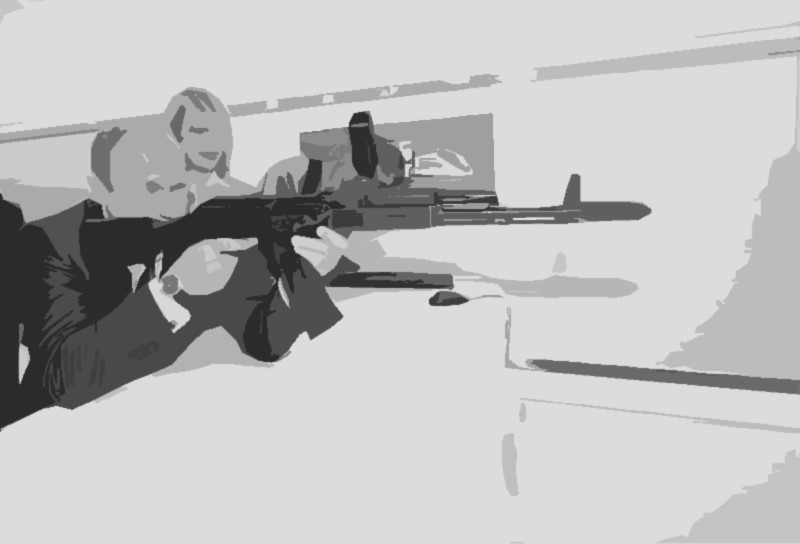 Bilder / Images: Alexey Druzhinin: Wladimir Putin mit einem AK-74-Gewehrsimulator auf einem elektronischen Schießstand während seines Besuchs des Zentrums für wissenschaftliche und technische Entwicklung der Russischen Eisenbahnen im Rigaer Bahnhof / Putin with a rifle simulator (Wikimedia commons) modifiziert, modified; BakeNecko: Putin, April 2020; modifiziert, modified (Wikimedia commons)