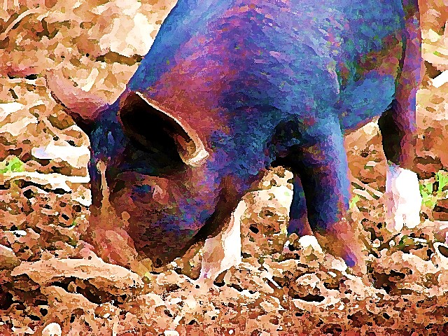 So wird etwa die alleinige Ausrichtung des Lebens auf Pflichterfüllung mit der Bemerkung, dass „Arbeit das Leben sauer“ mache, in Frage gestellt. Liest man den Satz aus der Sicht des Ebers, so erscheint er vollends als Persiflage des preußisch-wilhelminischen Pflicht- und Arbeitsethos. Dann nämlich wird das Lust suchende Schnüffeln des Ebers mit diesem Ethos auf eine Stufe gestellt.