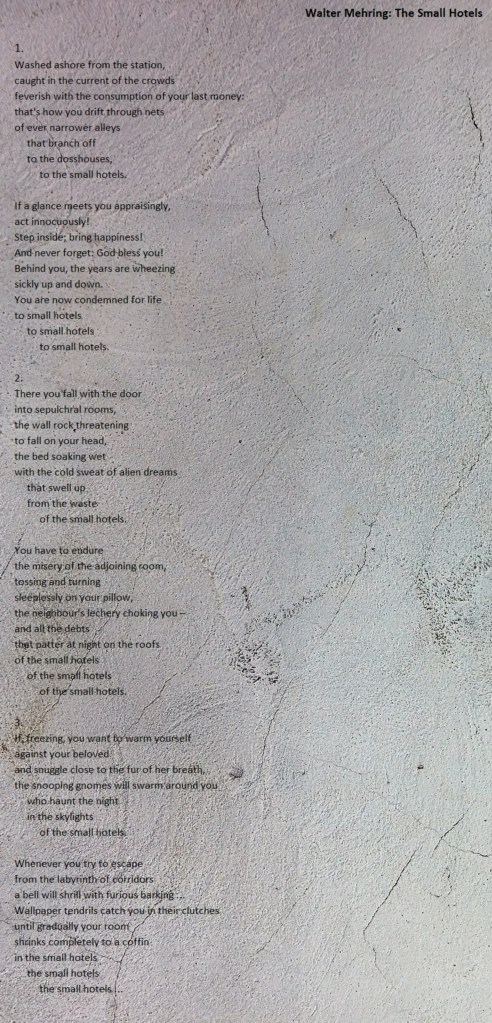 Über Walter Mehring Gedicht Die kleinen Hotels / About Walter Mehring’s poem The Small Hotels