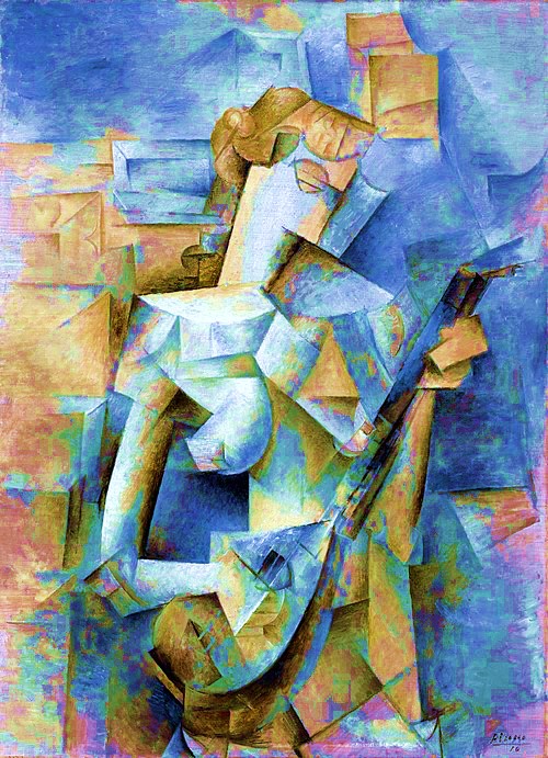 Bild: Pablo Picasso (1881 – 1973): Mädchen mit Mandoline (um 1910); New York, Museum of Modern Art (Wikimedia commons); farblich verändert